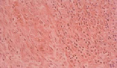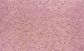 髓质型胸腺瘤:髓质型上皮细胞部分区域呈车辐状结构。