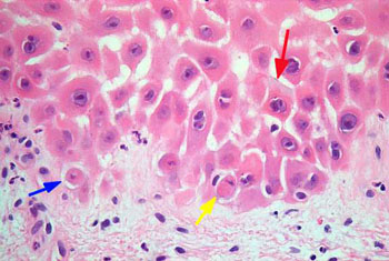 3.本病的皮肤病理主要表现为表皮棘细胞层坏死溶解,并导致大疱性破裂,在表皮层的血管周围有少量淋巴细胞浸润。在病程较久的病变组织中,表现为非特异性皮炎样改变,有不规则的棘皮症伴海绵层水肿,梭状角质细胞伴核固缩,免疫荧光检查阴性。