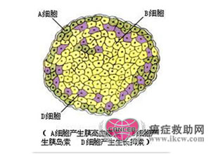 生长抑素瘤是一种十分罕见的胰腺内分泌肿瘤,可以发生于胰腺或胰腺外,后者主要发生在十二指肠和乏特氏(Vater)壶腹部。生长抑素瘤约半数为恶性。免疫细胞化学染色可见瘤细胞胞浆有生长抑素反应阳性。