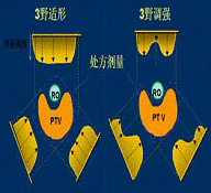 与常规放疗设备相比,3D 适形放射治疗设备增加了多叶准直器(Multi Leaf Collimator-MLC),因此,它所产生的辐射野可根据人体内肿瘤在空间任意角度(指机架3600 转动角度范围内)方向上的几何投影形状任意改变,使辐射野的几何形状始终与之匹配。